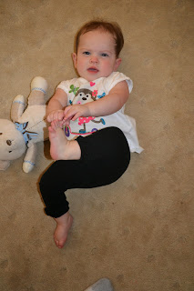 She is also a very active girl. She is crawling like a champ and can cruise along the furniture. She takes a good 1 nap a day and sometimes 2. She sleeps from 7 pm to 8 am most mornings. She is a great night sleeper.
